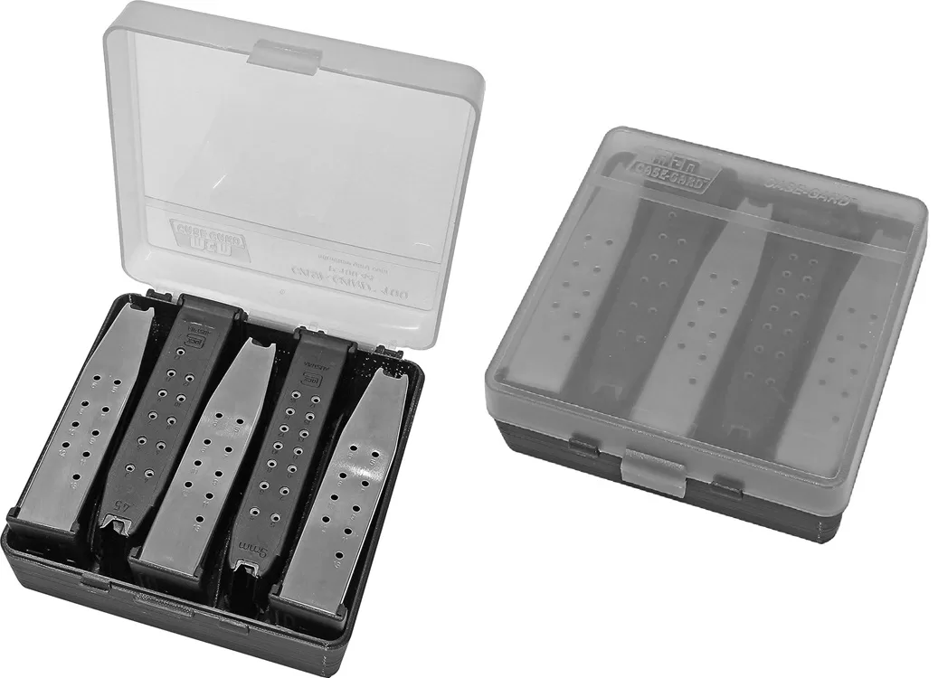 MTM PMC5 Compact Handgun Magazine Case, Holds 5 Double-Stack Magazines, USA Made, Clear Smoke