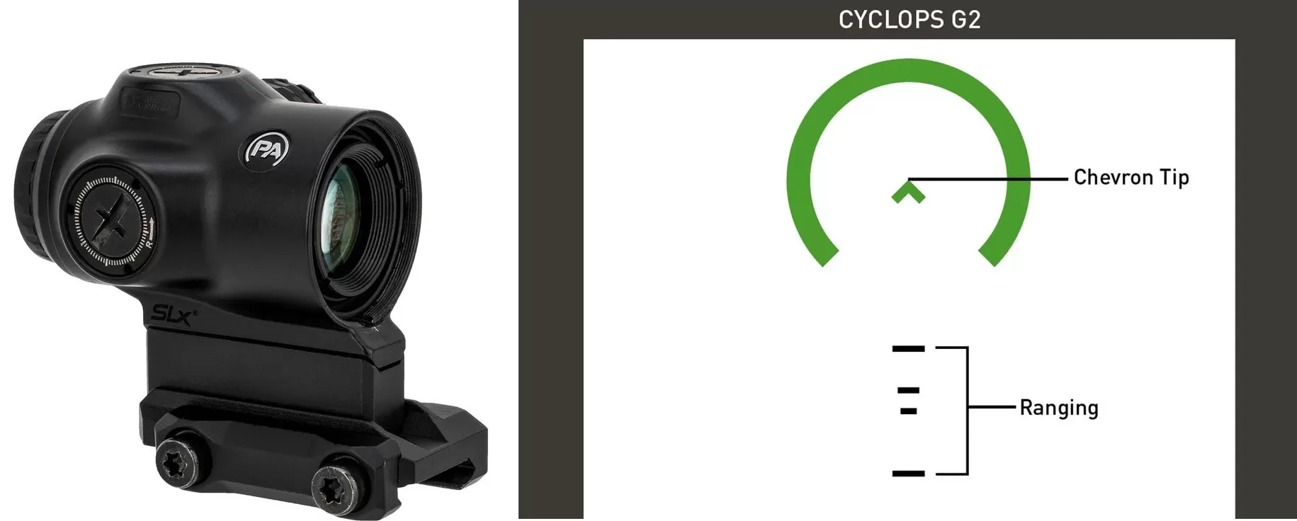 Primary Arms SLx 1X MicroPrism Scope – Green Illuminated ACSS Cyclops Reticle – Gen II