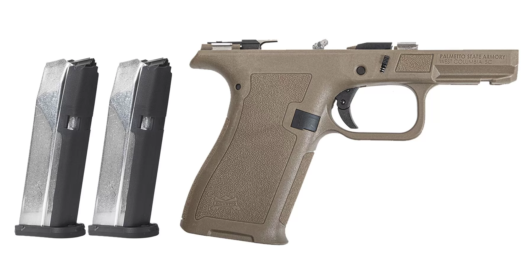 PSA Dagger Micro Complete Frame Assembly, FDE + 2 15 Round Mags