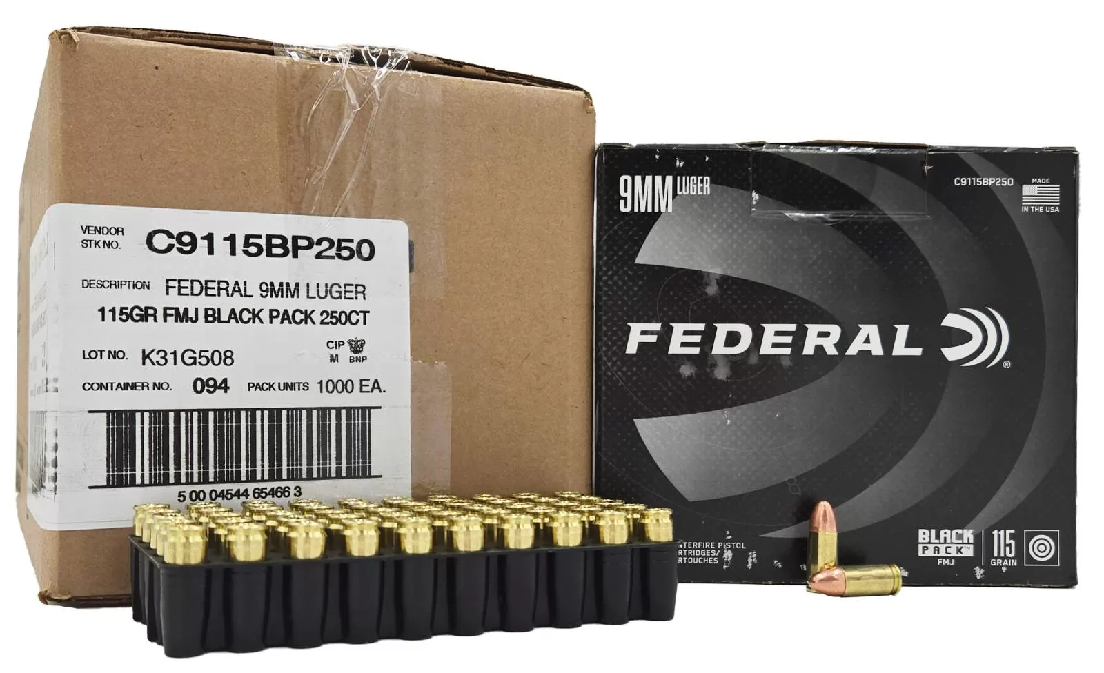 Federal Black Pack 9mm Luger 115 Grain Full Metal Jacket Ammunition 1000rd Case