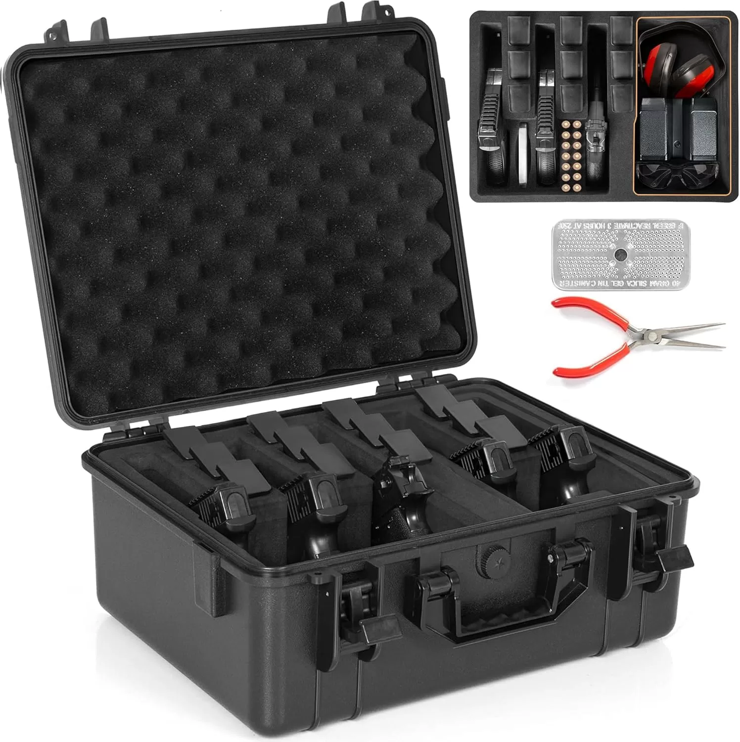 5 Gun Case & 12 Magazine TSA Approved Waterproof Pistol Case with Pre-Cut Foam